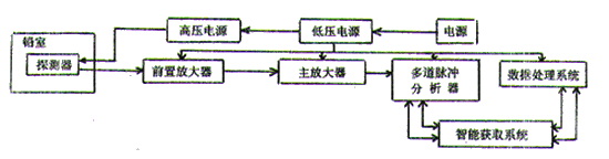 能譜數(shù)據(jù)獲取與處理系統(tǒng):由ADC智能獲取接口和計算機(jī)組成。探測器到ADC進(jìn)行模—數(shù)轉(zhuǎn)換,智能獲取接口對ADC的每個復(fù)換碼進(jìn)行實(shí)時處理、顯示、數(shù)據(jù)壓縮,并每隔一定時間將已壓縮的數(shù)據(jù)由接口傳送至計算機(jī),已進(jìn)行譜顯示的更新,每個譜的長度、寬度、停機(jī)方式和條件,起、停都由計算機(jī)獨(dú)立控制。在測量過程中,計算機(jī)可以停機(jī)或處理其它數(shù)據(jù)。